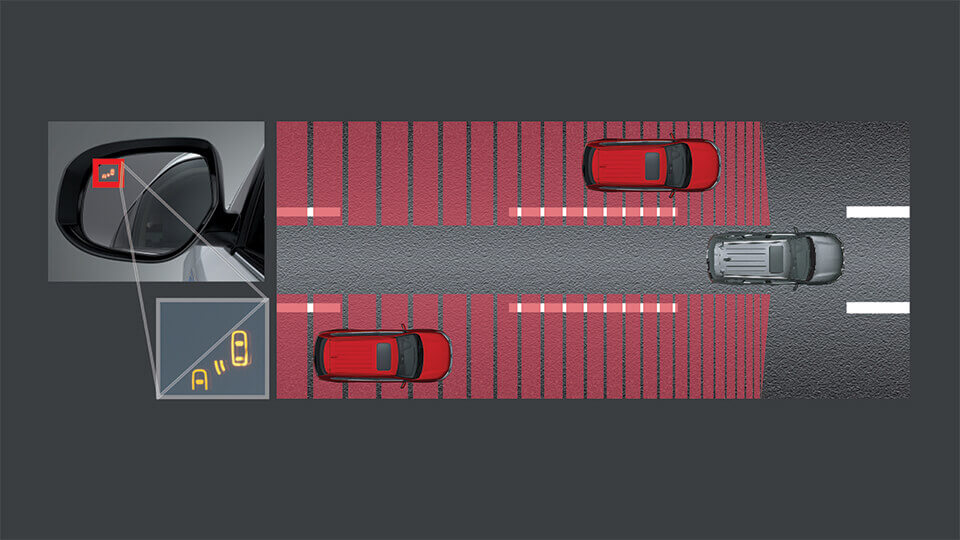 - Hệ thống cảnh báo điểm mù (BSW) Nhận điện phương tiện trong vùng điểm mù. Cảnh báo trên gương chiếu hậu & hỗ trợ cho người lái chuyển làn an toàn.