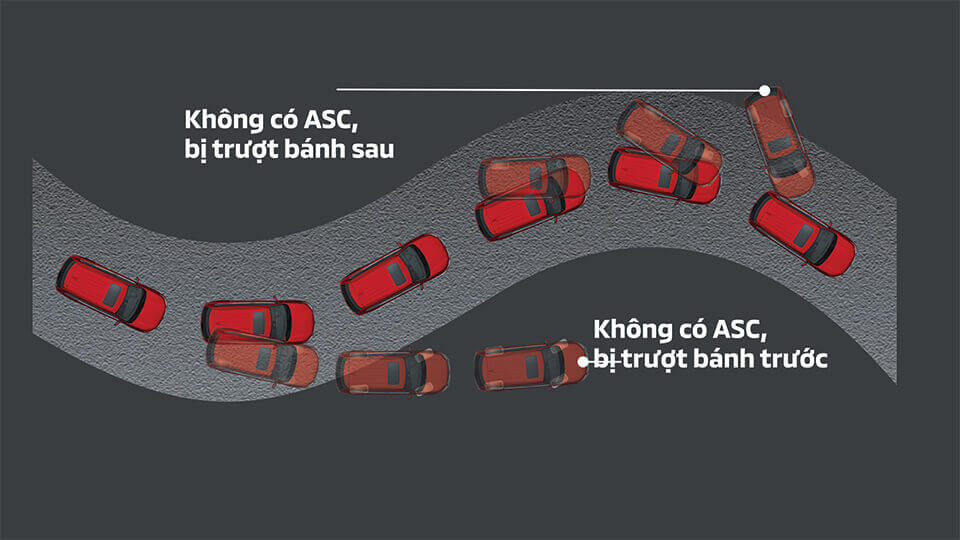- Hệ thống cân bằng điện tử (ASC) Kiểm soát lực phanh, nâng cao sự ổn định trong điều kiện đường trơn trượt